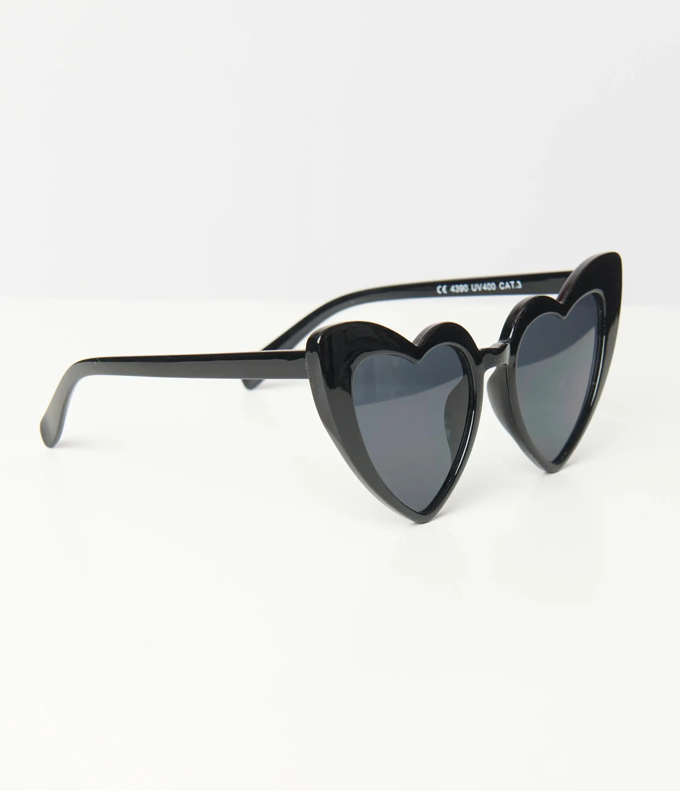 These stylish retro sunglasses from Unique Vintage are crafted in a lovely black heart shaped frames with a subtle cat eye for that extra oomf. The tinted lenses offer UV 400 protection!