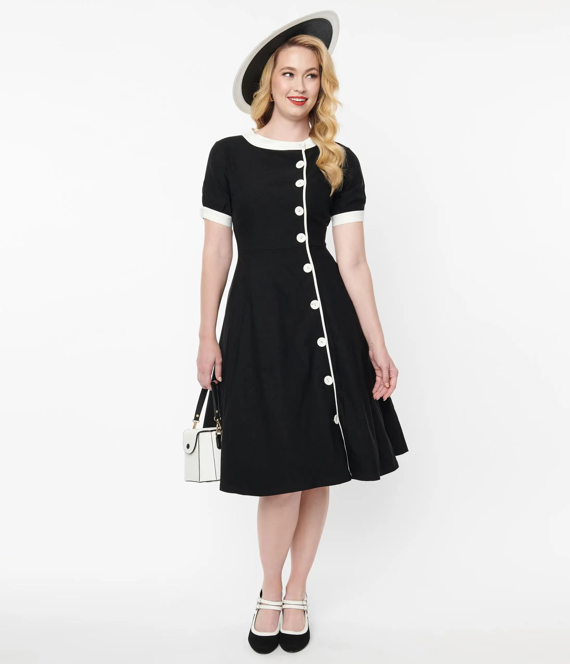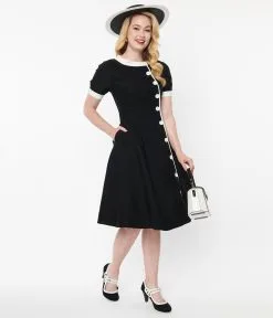 Be the first to review “Unique Vintage Black & White Contrast Button Swing Dress” Cancel reply