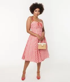 Be the first to review “Unique Vintage Coral Red Gingham Golightly Swing Dress” Cancel reply
