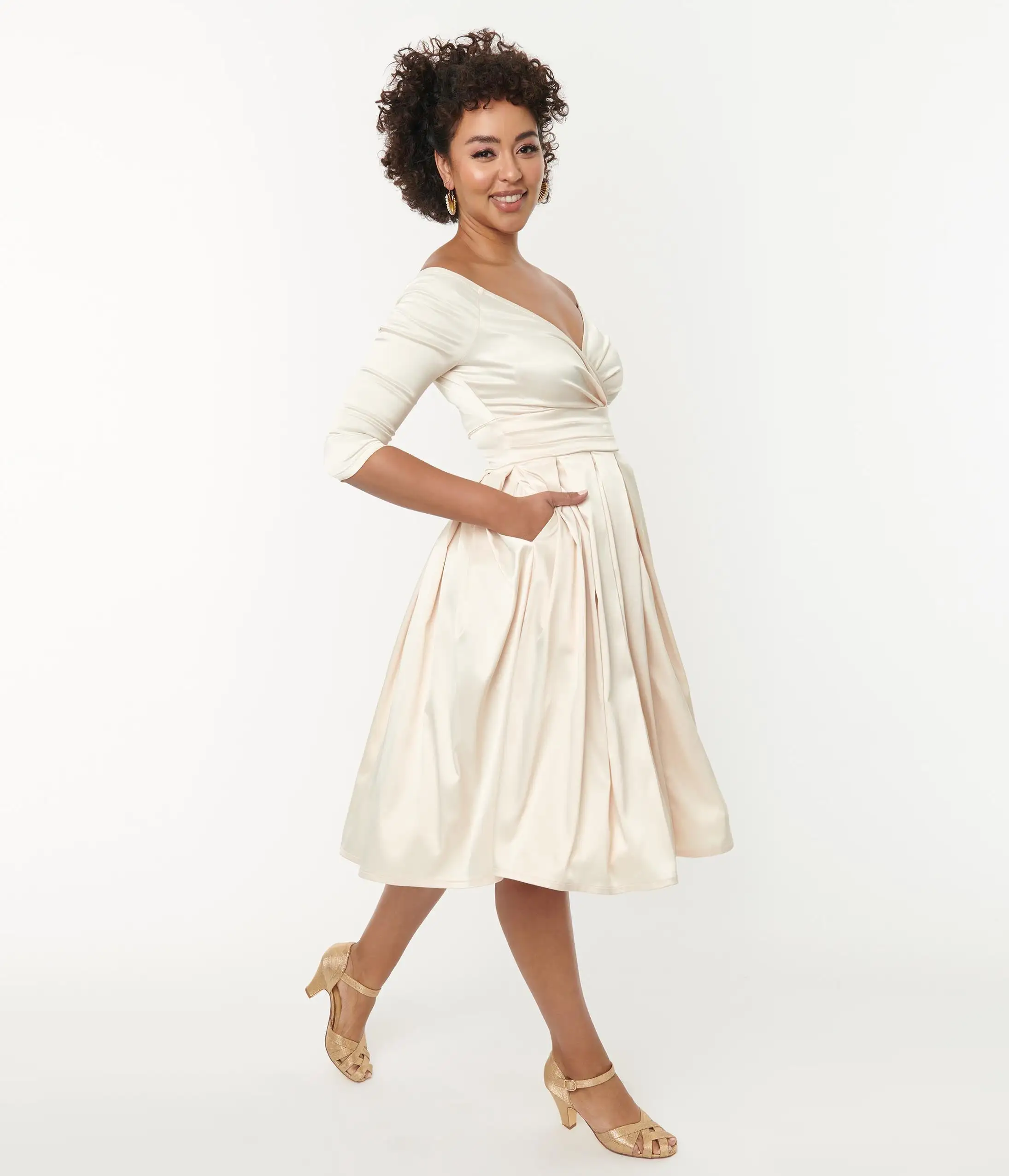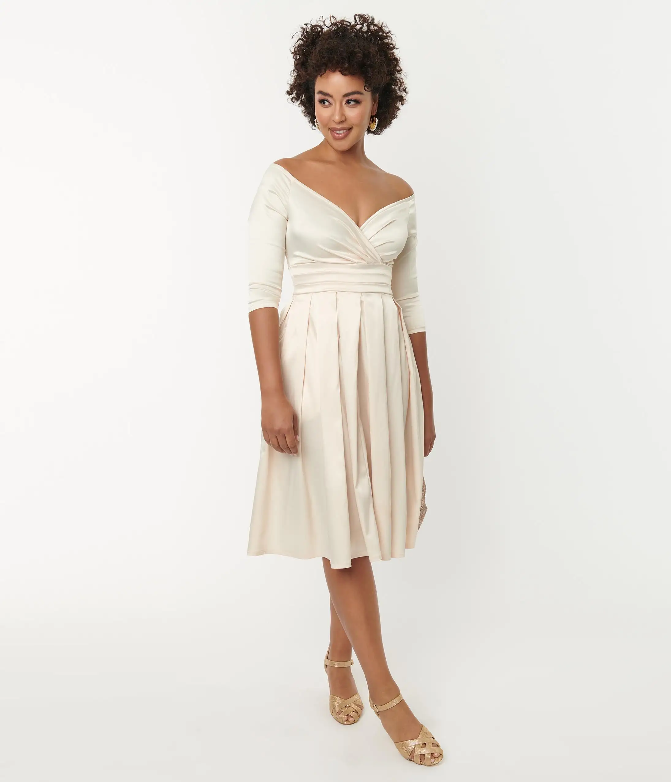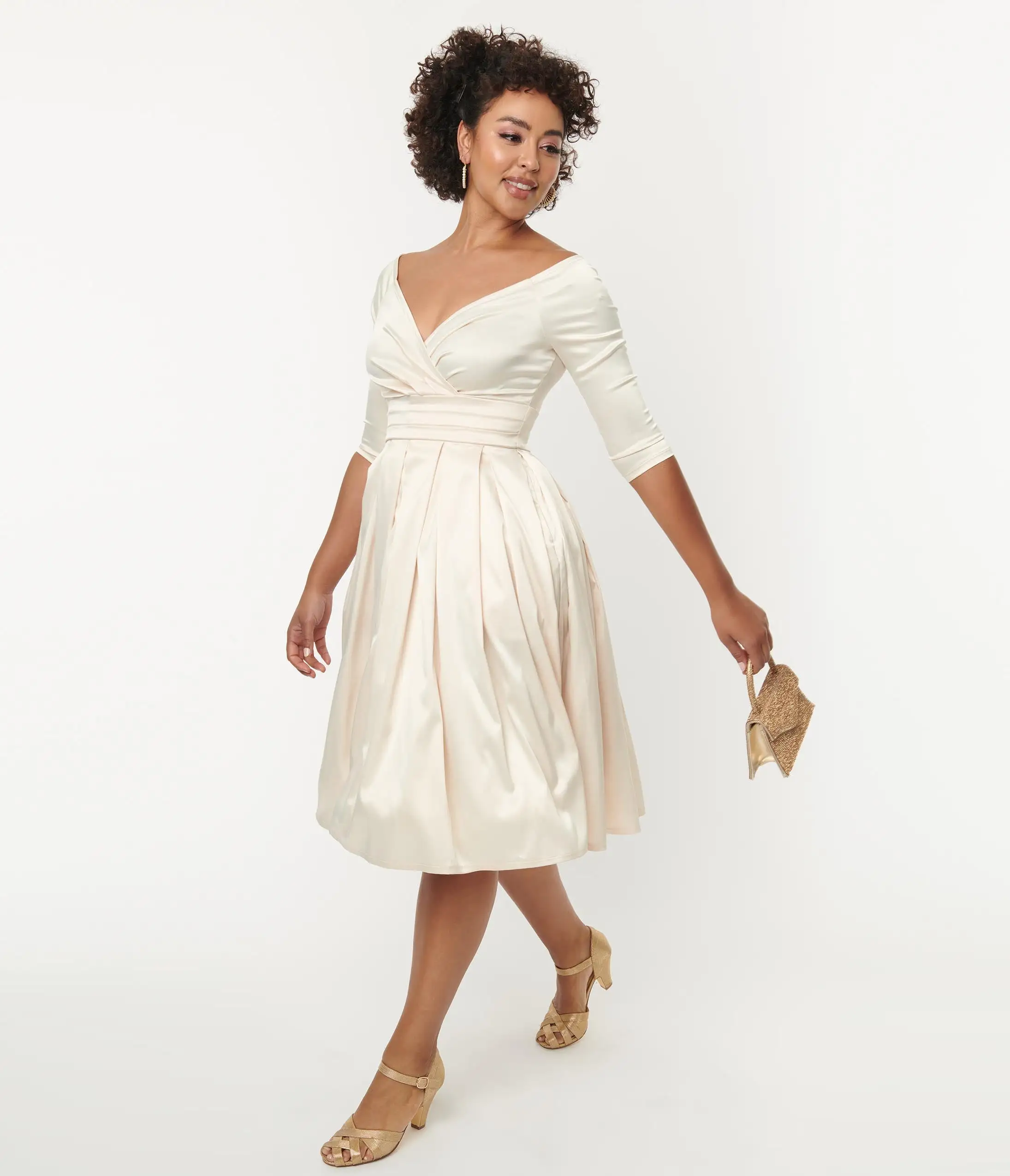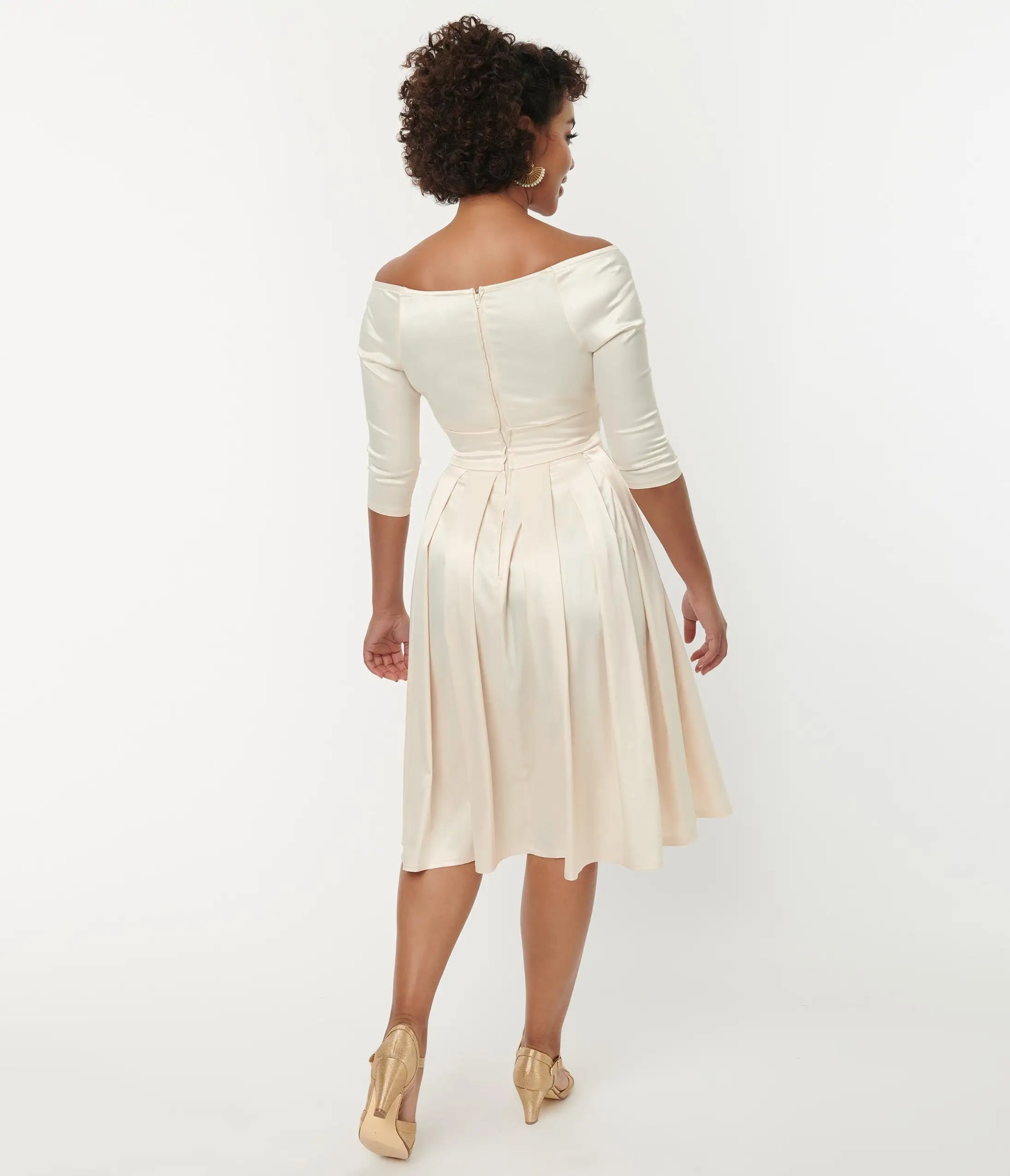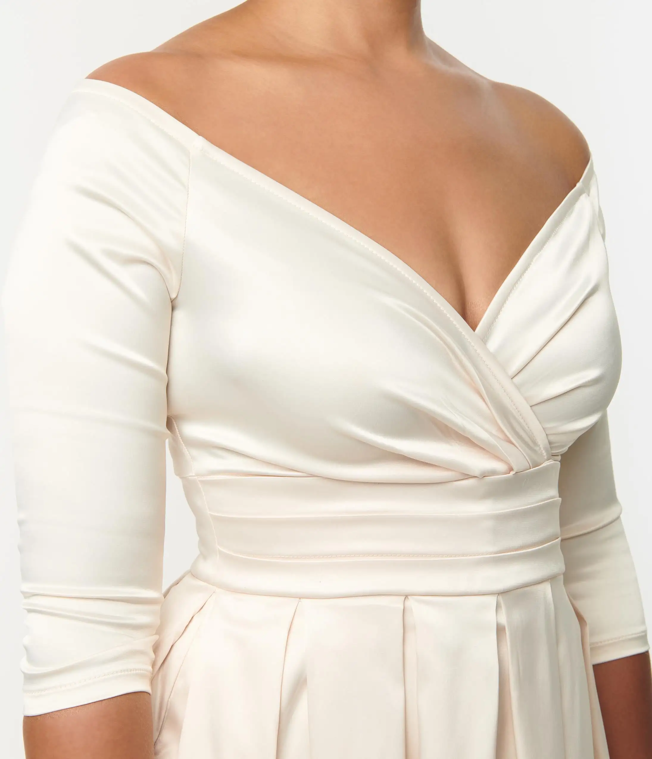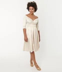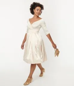 Be the first to review “Unique Vintage Creamy Ivory Satin Marceline Swing Dress” Cancel reply