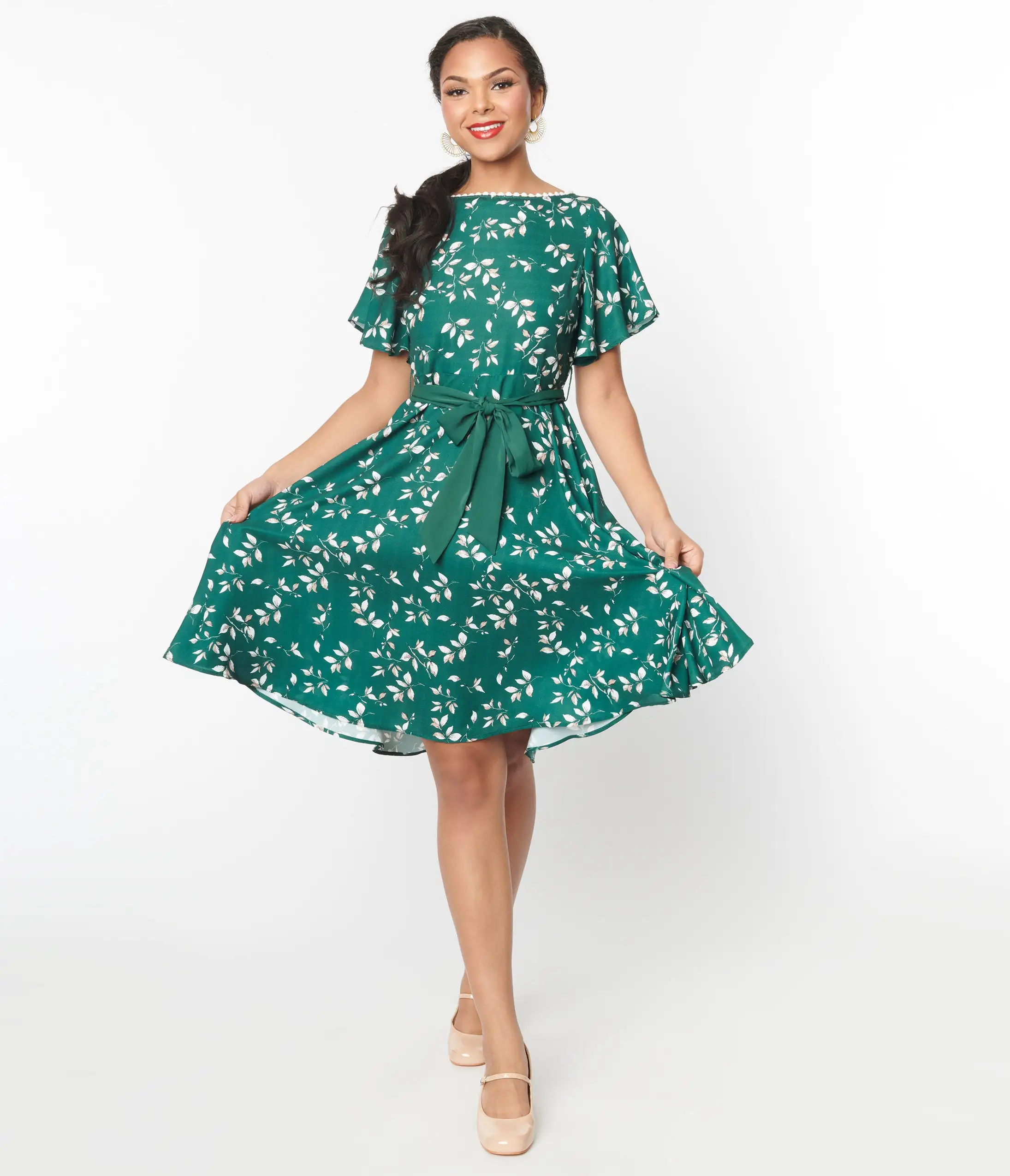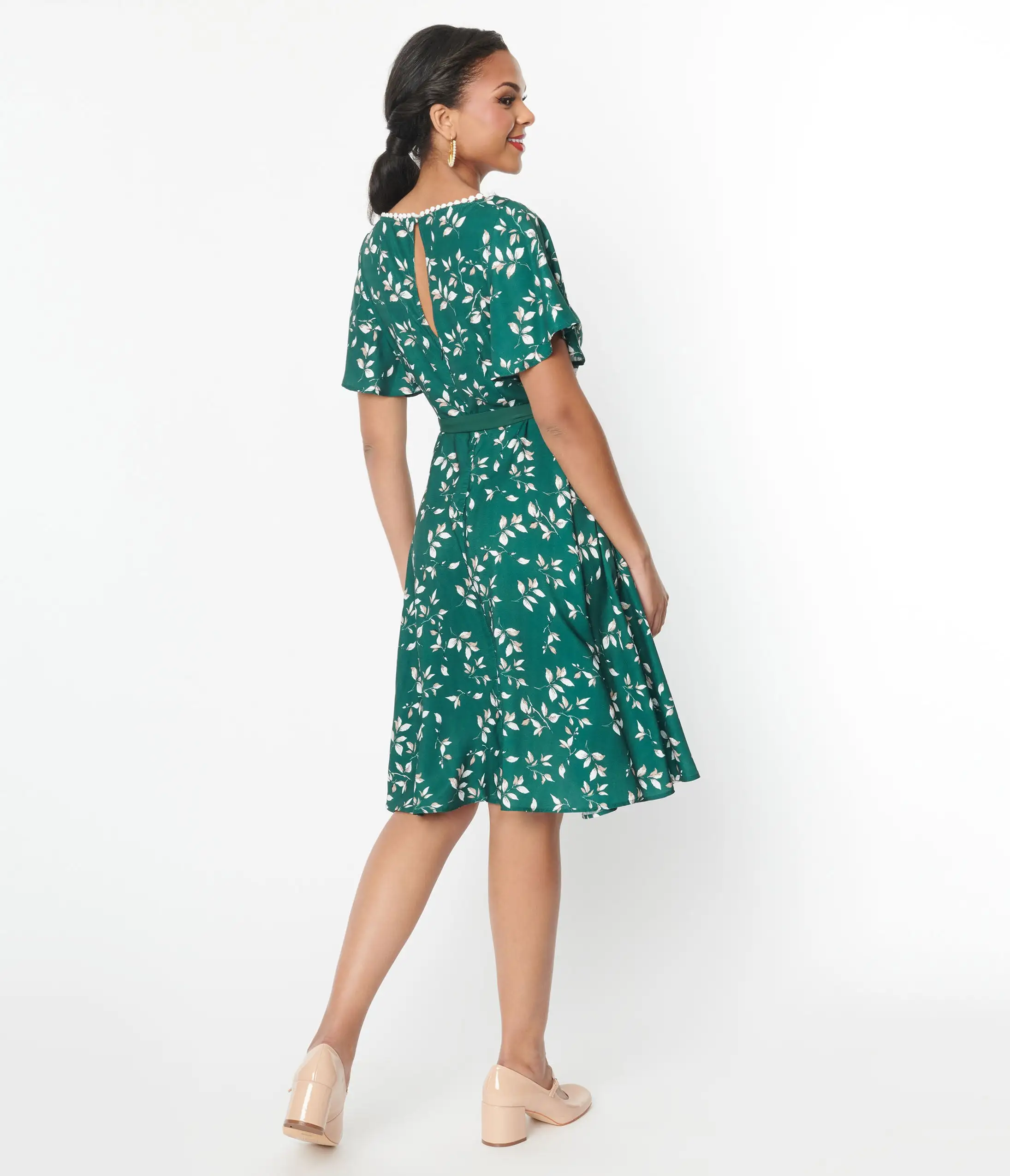 Be the first to review “Unique Vintage Emerald Leaf Swing Dress” Cancel reply