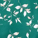 This lovely 1930s style swing dress is crafted in a lightweight emerald green woven fabric, delicately adorned with white leaves throughout. The short flutter sleeves frame the scoop neckline accented with a dot lace trim. Complete with a sash and back keyhole.