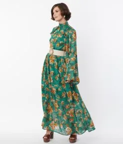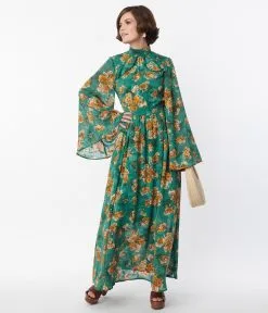 Be the first to review “Unique Vintage Green & Orange Floral Bell Sleeve Maxi Dress” Cancel reply