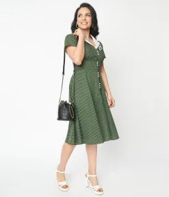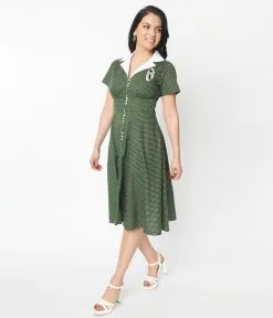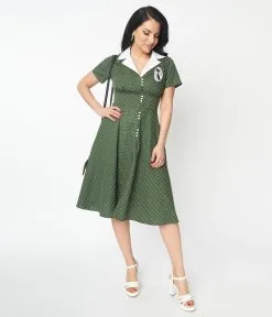 Be the first to review “Unique Vintage Green & White Pin Dot Cat Swing Dress” Cancel reply
