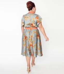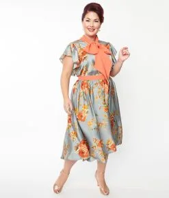 Be the first to review “Unique Vintage Plus Size Antique Blue & Orange Floral Satin Swing Dress” Cancel reply