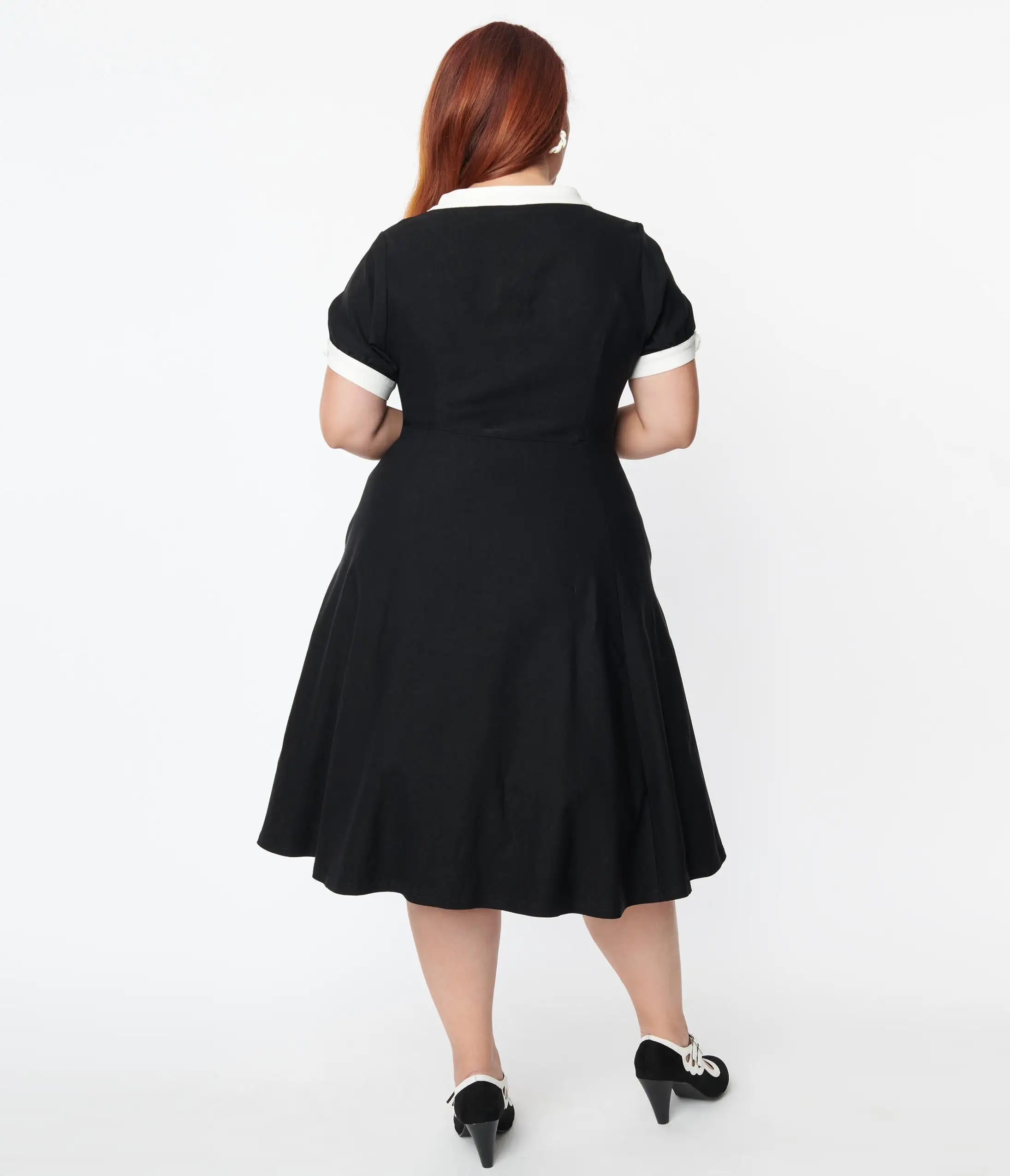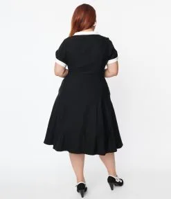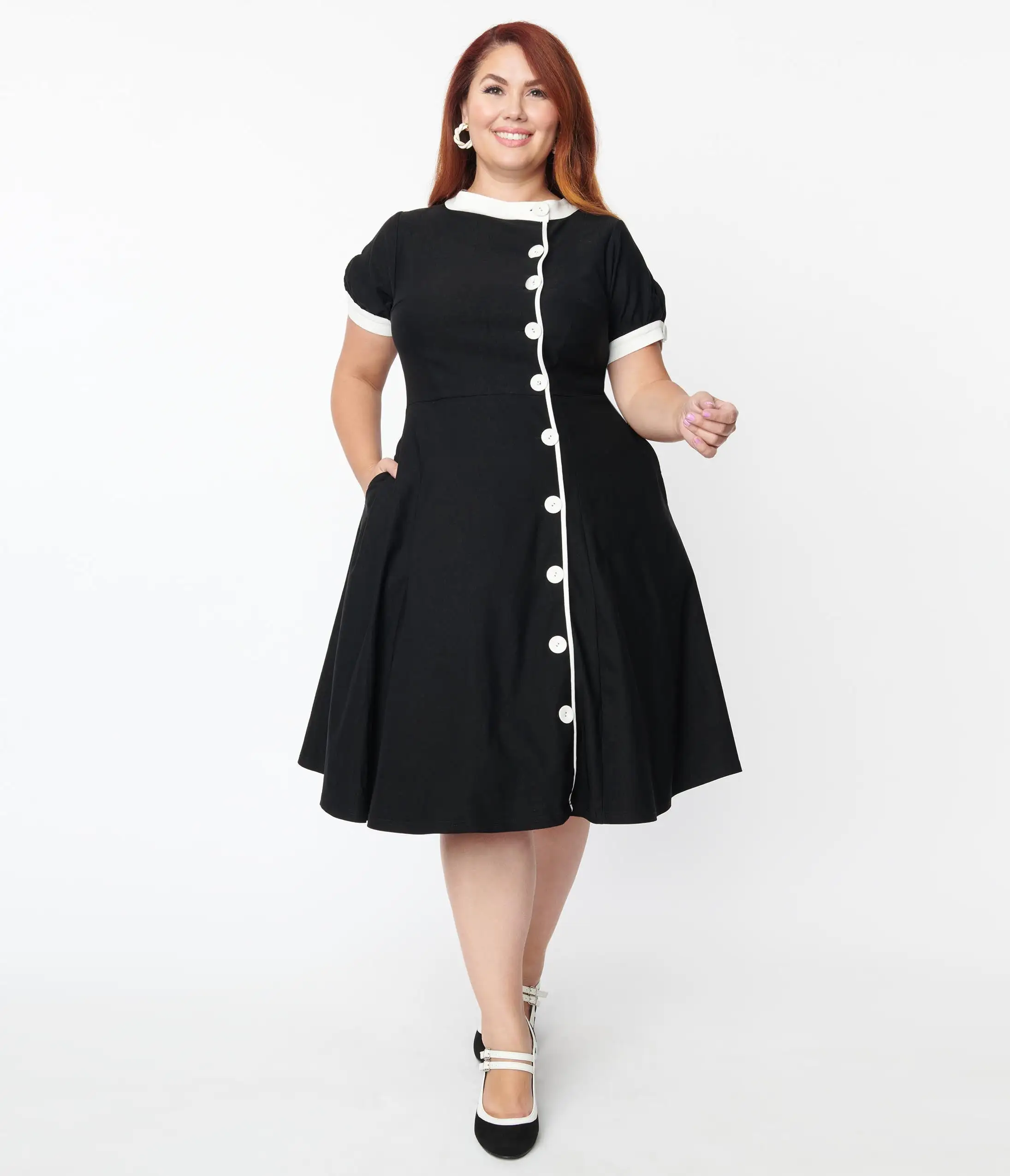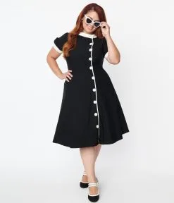 Be the first to review “Unique Vintage Plus Size Black & White Contrast Button Swing Dress” Cancel reply