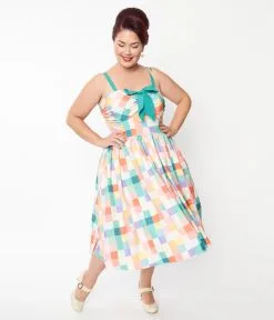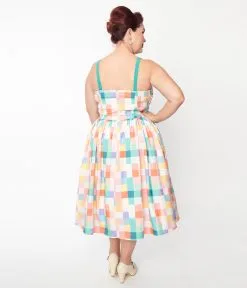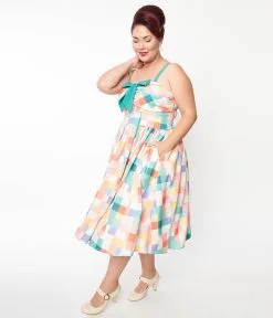 Be the first to review “Unique Vintage Plus Size Pastel Rainbow Checkered Golightly Flare Dress” Cancel reply