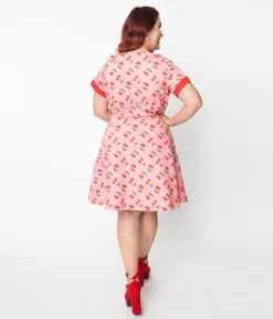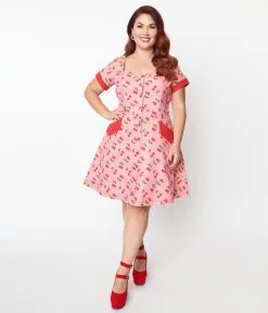 Be the first to review “Unique Vintage Plus Size Pink Denim & Cherry Print Fit & Flare Dress” Cancel reply