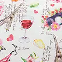 This sweet plus size fit and flare dress is crafted in a lightweight woven fabric that features a motif of Paris iconography with the Eiffel Tower, cups of coffee, wine, croissants, and cheese throughout the white backdrop. Outfitted with short sleeves, an attached pink sash, side pockets, and a back zipper.