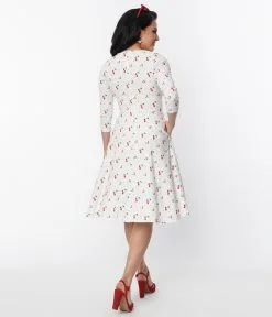 Be the first to review “Unique Vintage White & Cherry Print Pin Dot Keyhole Neck Swing Dress” Cancel reply